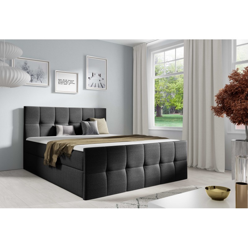 Das kontinentale Bett Aurevo ist eine einzigartige Lösung für Menschen, die Komfort und Funktionalität schätzen. Es wurde für die anspruchsvollsten Nutzer entworfen und vereint Eleganz mit praktischen Lösungen. Ausgestattet mit zwei Bettkasten ermöglicht es eine effektive Raumnutzung und bietet gleichzeitig dank der Verwendung einer Bonellfederkernmatratze einen komfortablen Schlaf.