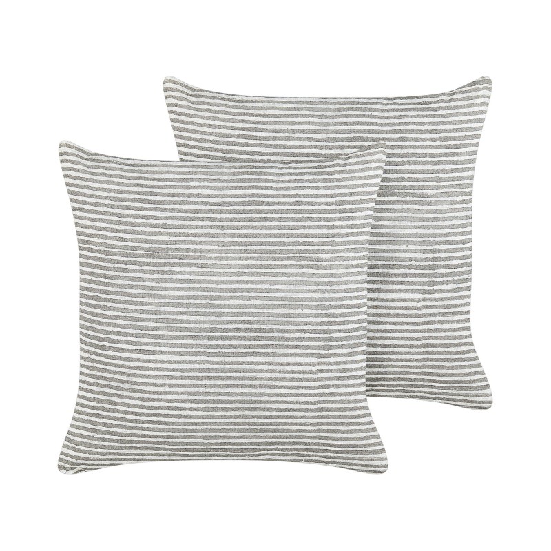 Set von 2 dekorativen Kissen KANPAS Leinen 50 x 50 cm Grau Gestreift