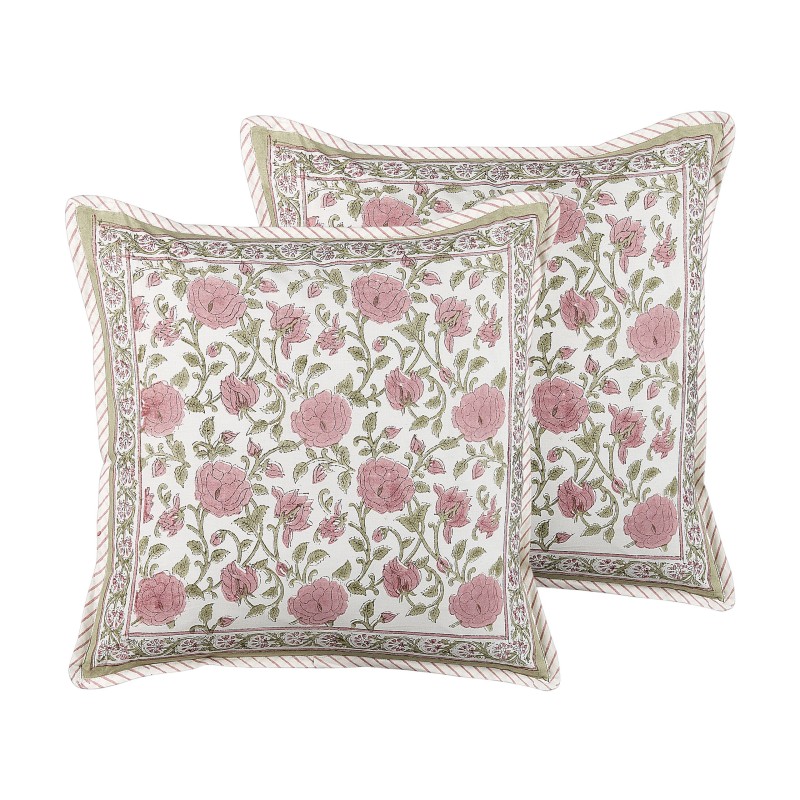 Fügen Sie Ihrem Zuhause mit diesen dekorativen Kissen mit Fransen einen Hauch von romantischem Stil hinzu. Das bezaubernde Blumenmuster wurde von Hand mit der Blockdrucktechnik gefertigt. Jedes Baumwollkissen verfügt über eine weiche Füllung und einen Reißverschluss für eine bequeme Nutzung.
