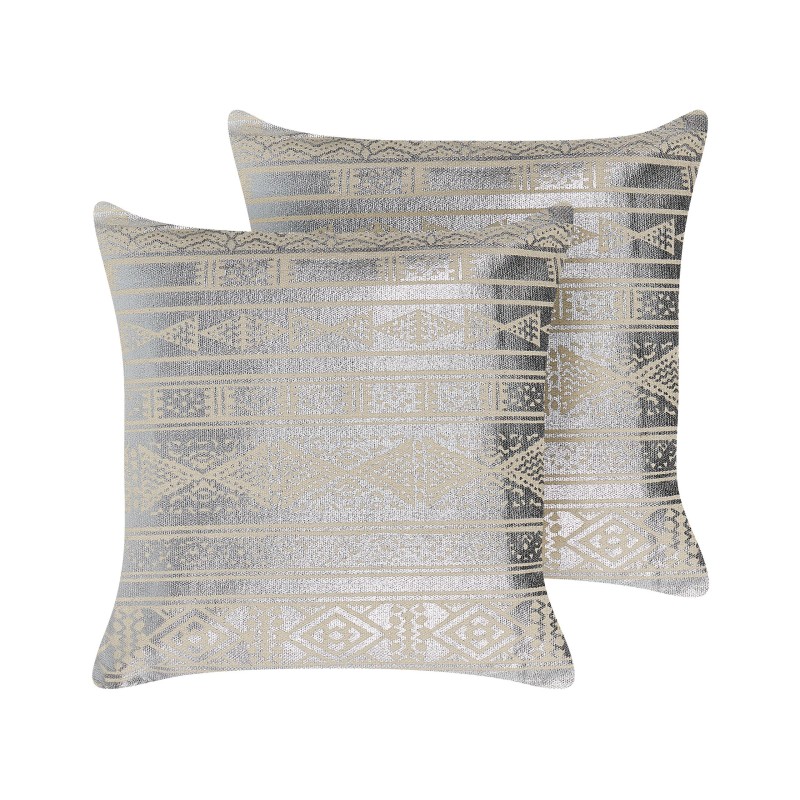 Set mit 2 dekorativen Kissen OUJDA Baumwolle 50 x 50 cm Silber Geometrisches Muster