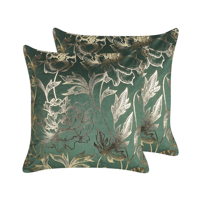Set aus 2 dekorativen Kissen DAFFODIL Samt 45 x 45 cm Smaragd Blumenmuster