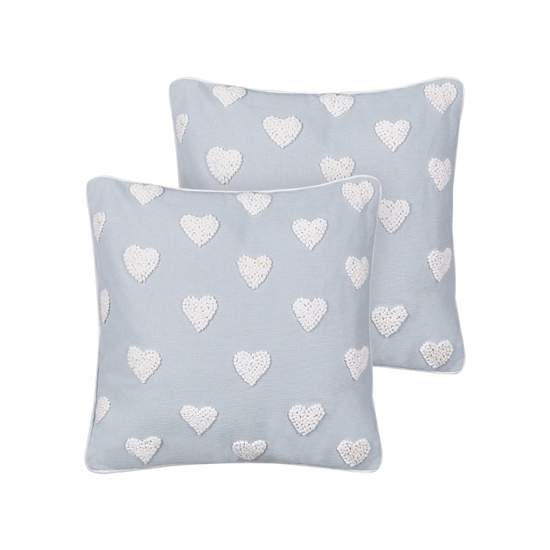 2 dekorative Baumwollkissen mit Herzen 45 x 45 cm grau GAZANIA