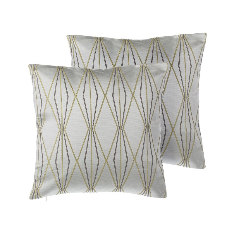 Diese gemütlichen Kissen werden jedes Sofa, Bett oder jeden Sessel wunderbar schmücken. Ihr geometrisches Muster, das an Diamanten erinnert, hebt sich auf einem zarten, grauen Hintergrund ab. Hochwertige Materialien und ein Reißverschluss machen die Kissen extrem einfach zu reinigen, und ihre Polyesterfüllung garantiert höchsten Komfort.