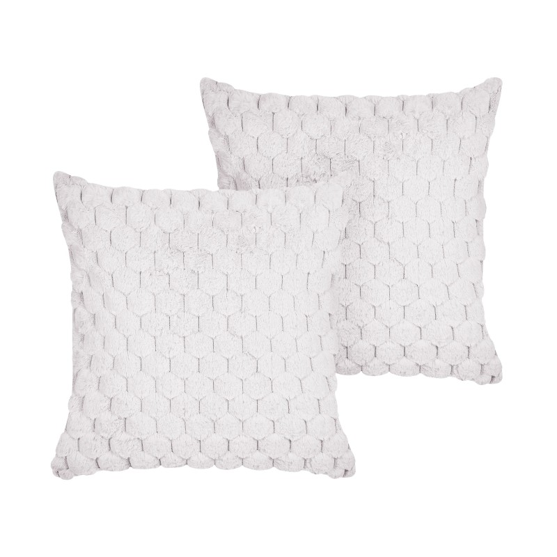 Satz von 2 dekorativen Kissen PURSLANE Kunstfell 43 x 43 cm Weiß Geometrisches Muster