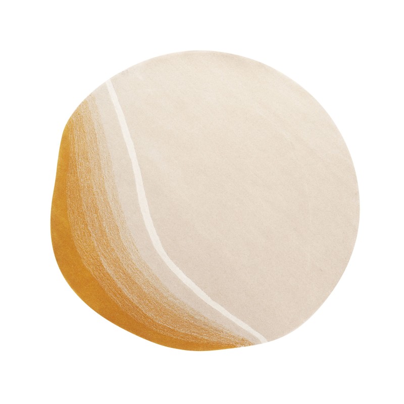 Ein Teppich mit organischer, abgerundeter Form, der sich nahtlos in die heutigen Interior-Trends einfügt. Sein künstlerisches Design erfüllt den Raum mit visueller Wärme und schafft sofort eine heimelige Atmosphäre. Hergestellt aus hochwertiger Wolle, ist er nicht nur weich im Griff, sondern strahlt auch dank der hellen Farbpalette einen künstlerischen Charme aus.