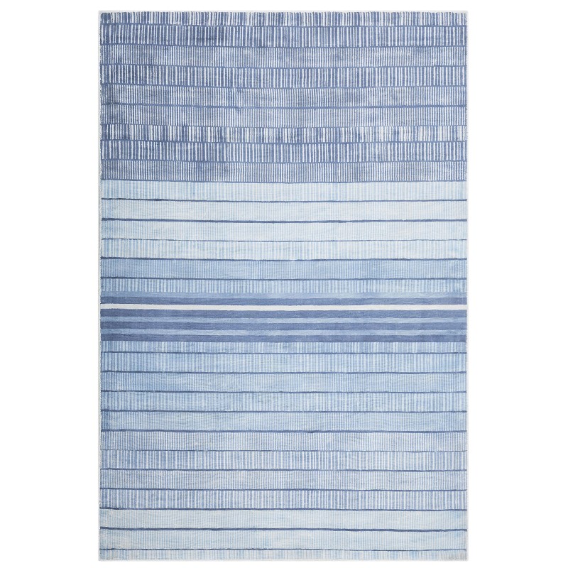 Ein Teppich, der sich in fast jedem Interieur bewährt, sei es im modernen, skandinavischen oder maritimen Stil. Hergestellt aus strapazierfähiger Viskose und mit Baumwolle unterfüttert für zusätzliche Haltbarkeit. Das geometrische Streifenmuster in verschiedenen Blautönen unterstreicht wunderschön eine minimalistische Einrichtung in Grundfarben.