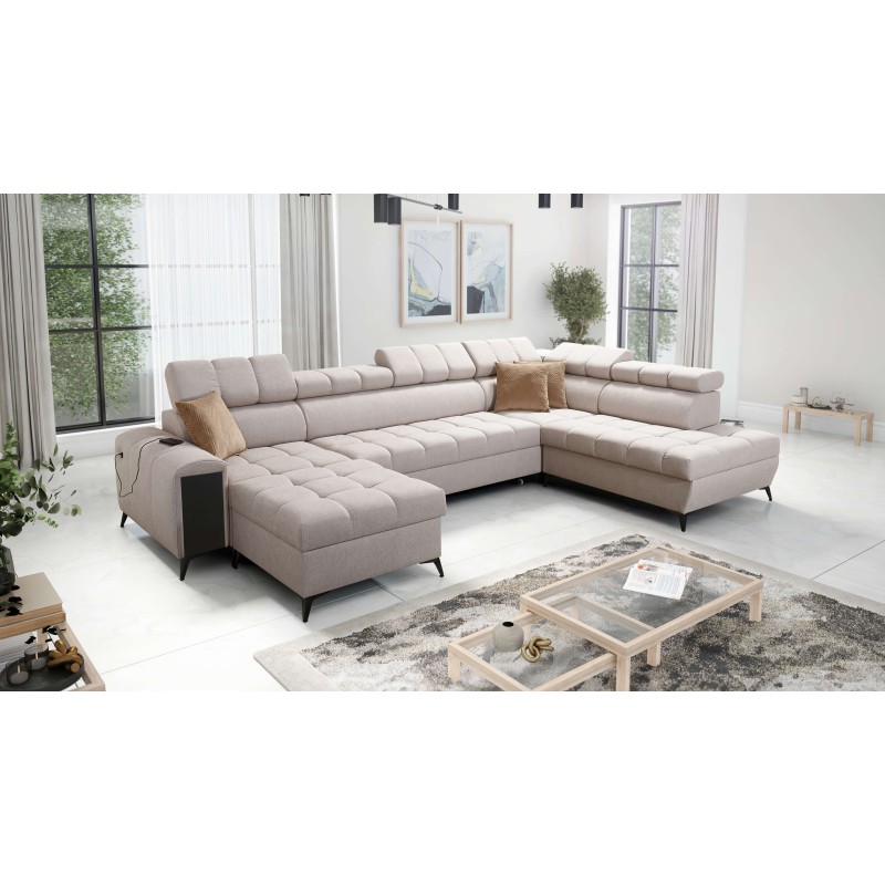 U-förmiges Sofa Venna VI mit Schlaffunktion, USB-Anschluss und öffnender Bar in Stoff Avra 2