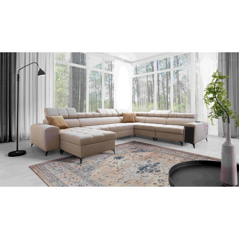 Ecksofa in U-Form Venna VIII mit Schlaffunktion, USB-Anschluss und öffnender Bar, Stoff Avra 2