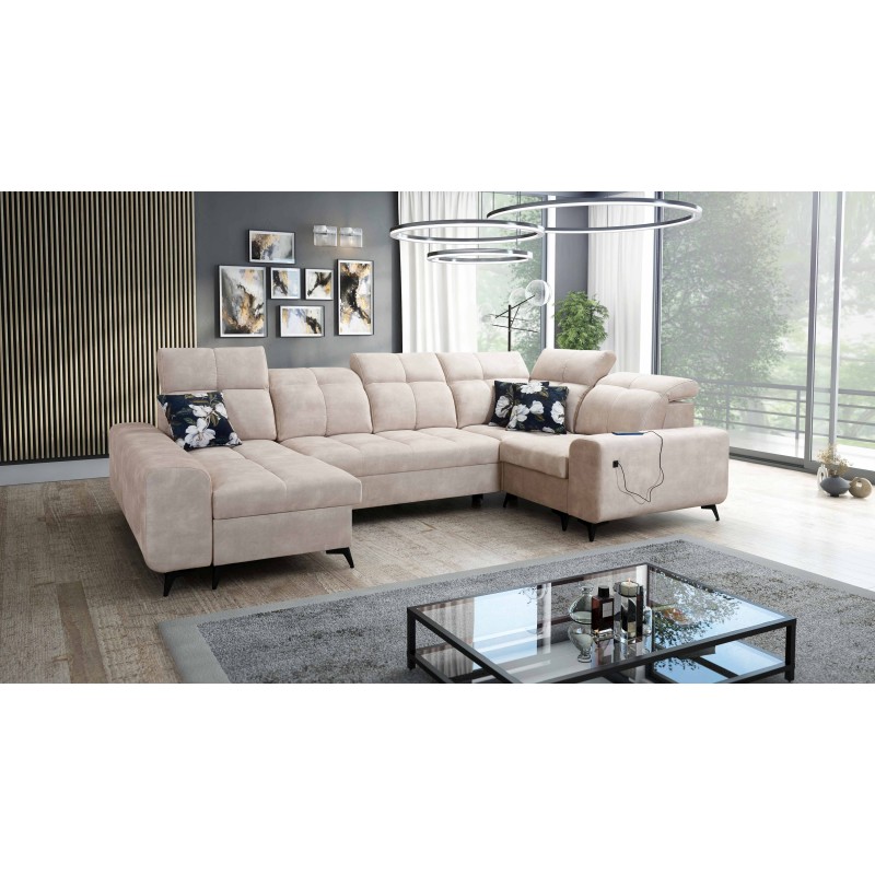 U-förmiges Sofa Ascot IV mit Schlaffunktion, USB-Anschluss und verstellbaren Kopfstützen, Stoff Wave 2