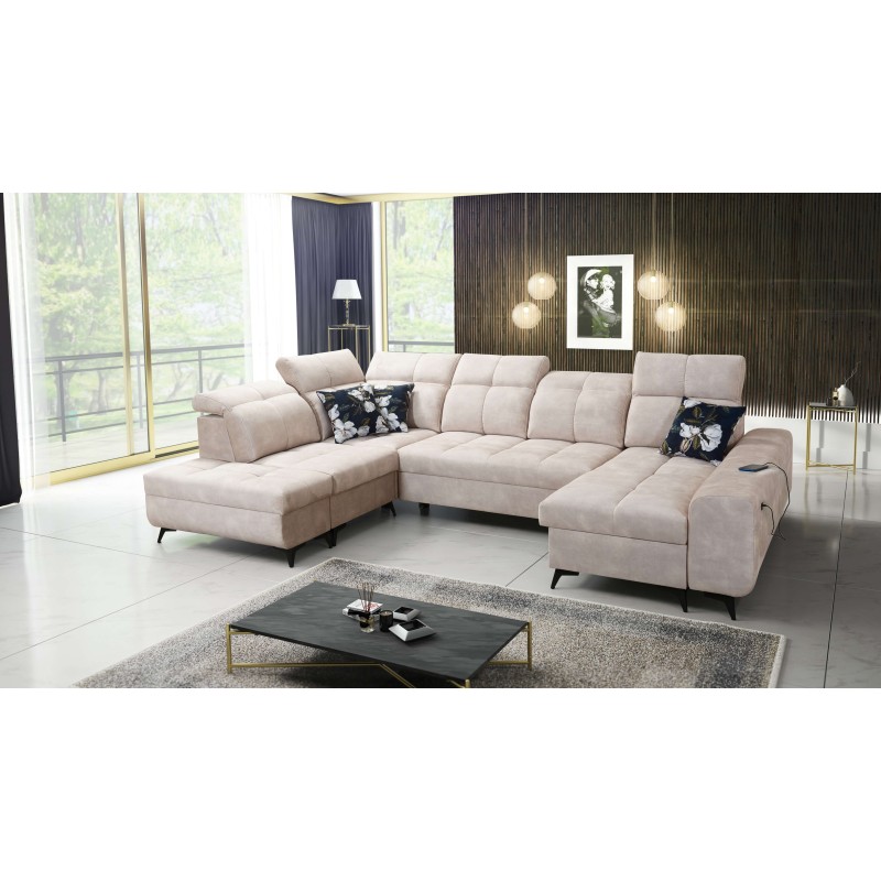 U-förmiges Ecksofa Ascot VI mit Schlaffunktion, USB-Anschluss und verstellbaren Kopfstützen