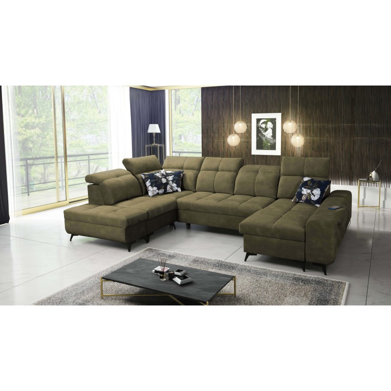 U-förmiges Ecksofa Ascot VI mit Schlaffunktion, USB-Port und verstellbaren Kopfstützen