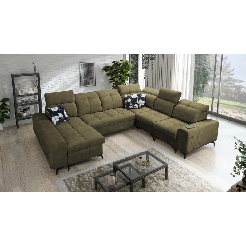 U-förmiges Sofa Ascot VIII mit Schlaffunktion, USB-Anschluss und verstellbaren Kopfstützen Stoff Wave 11