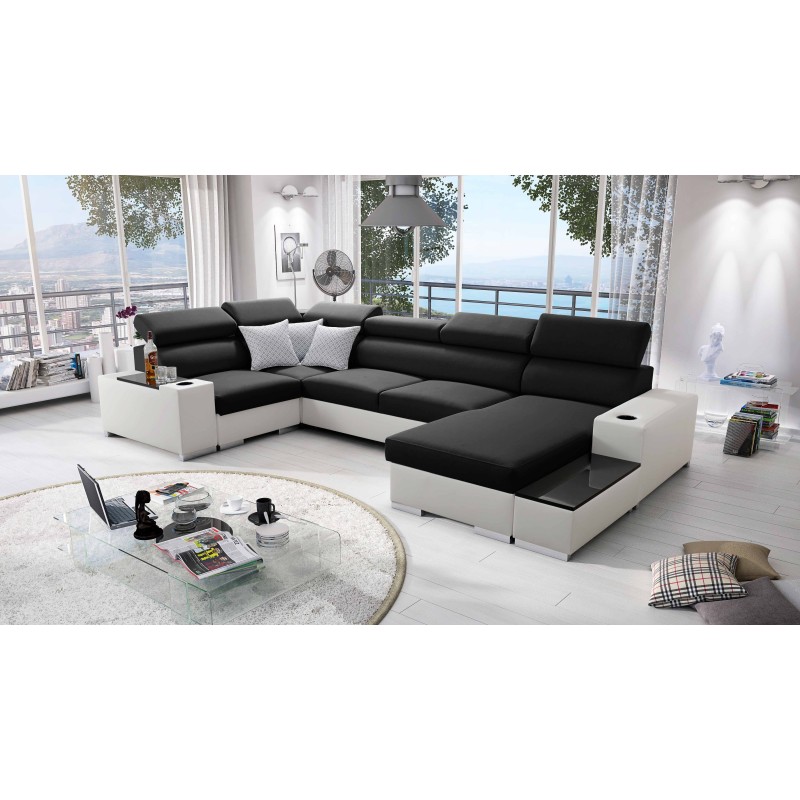 U-förmiges Ecksofa Napoli IV Mini mit Schlaffunktion und öffnender Bar Stoff Sawana 14 + Kunstleder