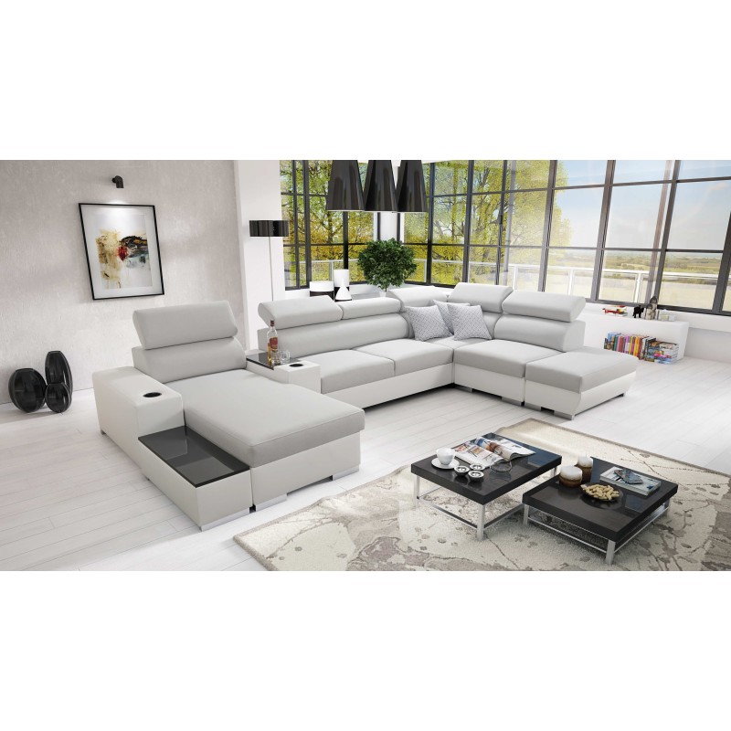 U-förmiges Ecksofa Napoli V mit Schlaffunktion und öffnender Bar Stoff Lexo 6601 + Kunstleder