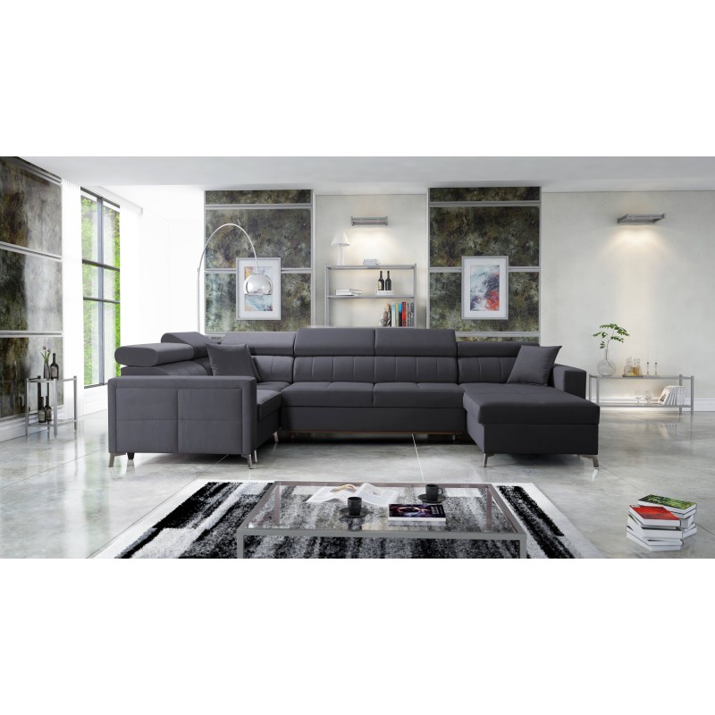 U-förmiges Sofa Oslo V Mini mit Schlaffunktion und Bettkasten, Stoff Jaguar 2191