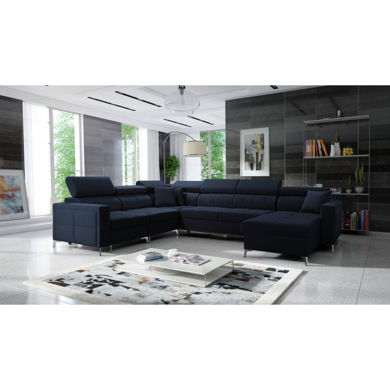 Das U-förmige Sofa Oslo VII mit Schlaffunktion und Bettkasten ist eine Kombination aus Stil, Funktionalität und Komfort. Hergestellt aus hochwertigem Samtstoff, Jaguar 2186, präsentiert es sich äußerst elegant und modern. Sein universelles Design macht es zu einer perfekten Ergänzung für jedes Interieur und verleiht ihm Charme und Gemütlichkeit.