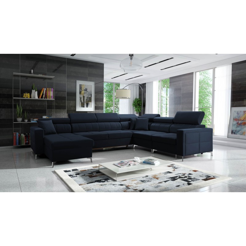 Das U-förmige Sofa Oslo VII mit Schlaffunktion und Bettkasten ist eine Kombination aus Stil, Funktionalität und Komfort. Hergestellt aus hochwertigem Samtstoff, Jaguar 2186, präsentiert es sich äußerst elegant und modern. Sein universelles Design macht es zu einer perfekten Ergänzung für jedes Interieur und verleiht ihm Charme und Gemütlichkeit.