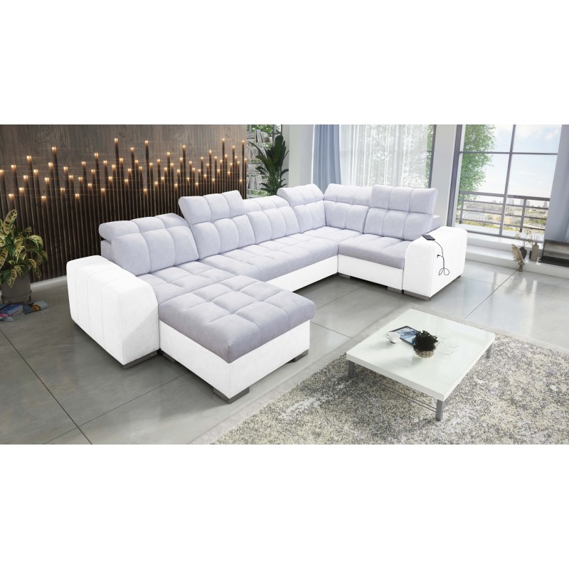 Das U-förmige Ecksofa Prisma IV mit Schlaffunktion, USB-Anschluss und Bettkasten, Stoff Terra 80 + Kunstleder