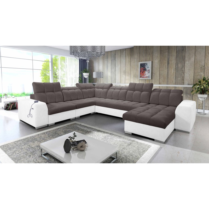 Ecksofa in U-Form Prisma VIII mit Schlaffunktion, USB-Anschluss und Bettkasten, Stoff Terra 26 + Kunstleder
