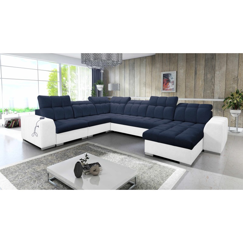Das U-förmige Ecksofa Prisma VIII mit Schlaffunktion, USB-Anschluss und Bettkasten in Stoff Terra 80 – ein außergewöhnliches Möbelstück, das Sie mit Stil und Funktionalität begeistern wird.