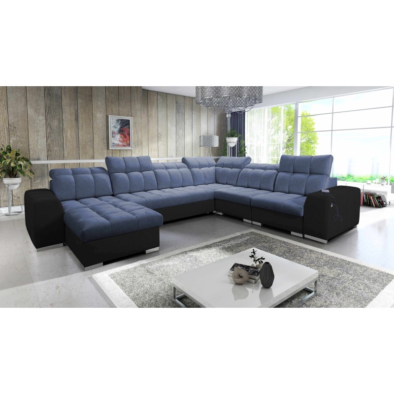 Das U-förmige Ecksofa Prisma VIII mit Schlaffunktion, USB-Anschluss und Bettkasten in Stoff Terra 80 – ein außergewöhnliches Möbelstück, das Sie mit Stil und Funktionalität begeistern wird.