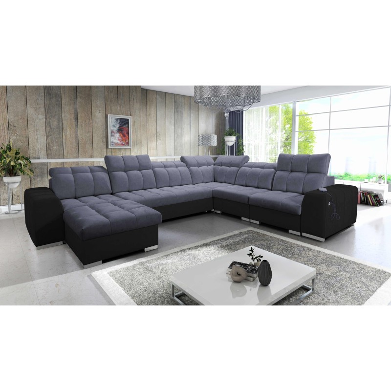 Das U-förmige Ecksofa Prisma VIII mit Schlaffunktion, USB-Anschluss und Bettkasten in Stoff Terra 80 – ein außergewöhnliches Möbelstück, das Sie mit Stil und Funktionalität begeistern wird.