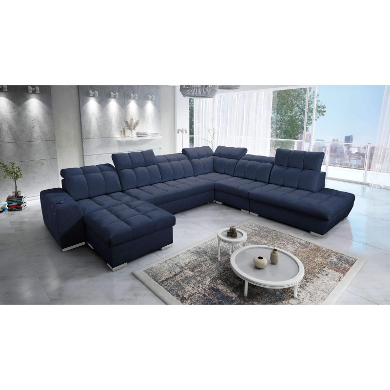 U-förmiges Ecksofa Prisma X mit Schlaffunktion, USB-Anschluss und Bettkasten, Stoff Terra 79