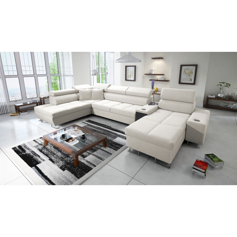 Ecksofa in U-Form Orbix V mit Schlaffunktion, verstellbare Kopfstützen, USB-Anschluss und Bettkasten, Stoff Ultario Velvet 29.
