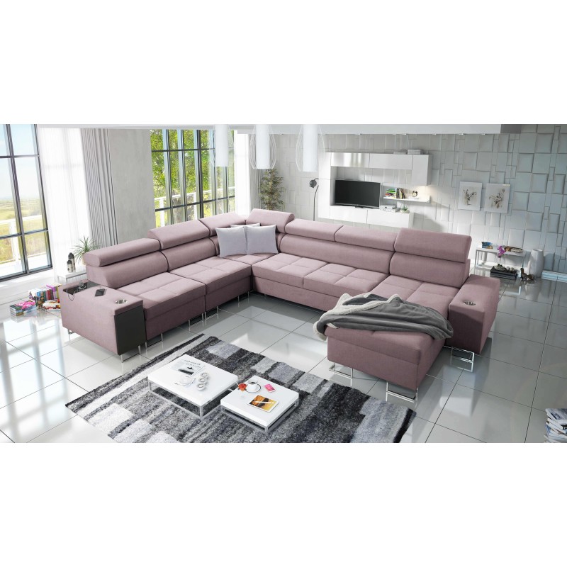 U-förmiges Sofa Orbix VIII mit Schlaffunktion, verstellbaren Kopfstützen, USB-Anschluss und Bettkasten, Stoff Sawana 61