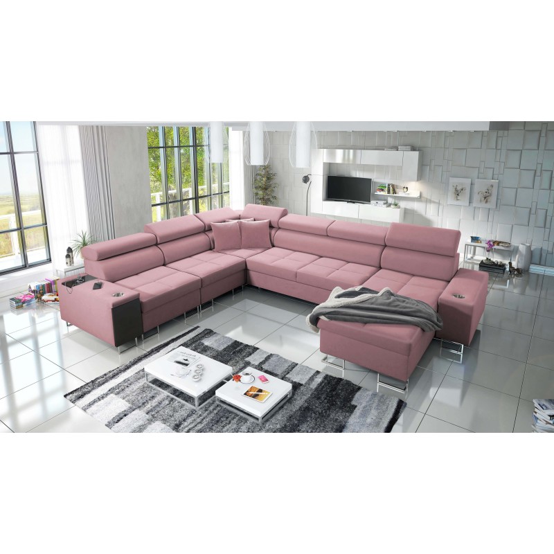 Ecksofa in U-Form Orbix VIII mit Schlaffunktion, verstellbaren Kopfstützen, USB-Anschluss und Bettkasten aus Ultario Velvet Stof