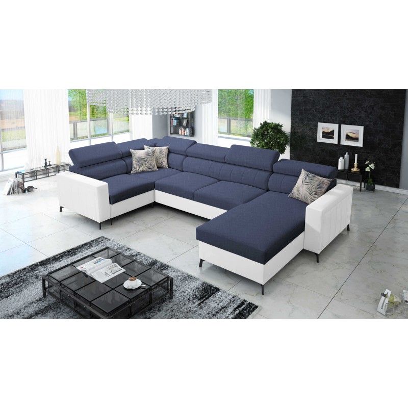 U-förmiges Ecksofa Arco V Mini mit Schlaffunktion, verstellbare Kopfstützen Stoff Sawana 80 + Kunstleder