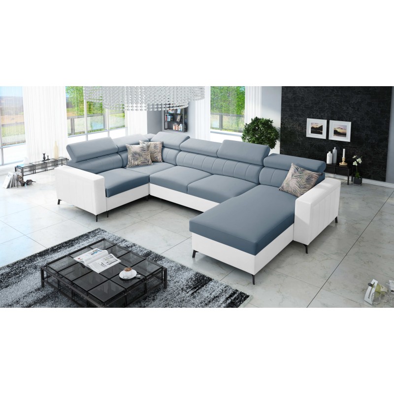 Ecksofa in U-Form Arco V Maxi mit Schlaffunktion, verstellbare Kopfstützen Stoff Mono 239 + Kunstleder