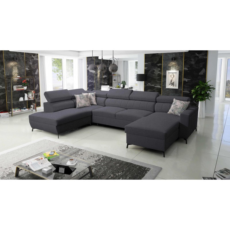 Ecksofa in U-Form Arco VI mit Schlaffunktion, verstellbare Kopfstützen, Stoff Sawana 96