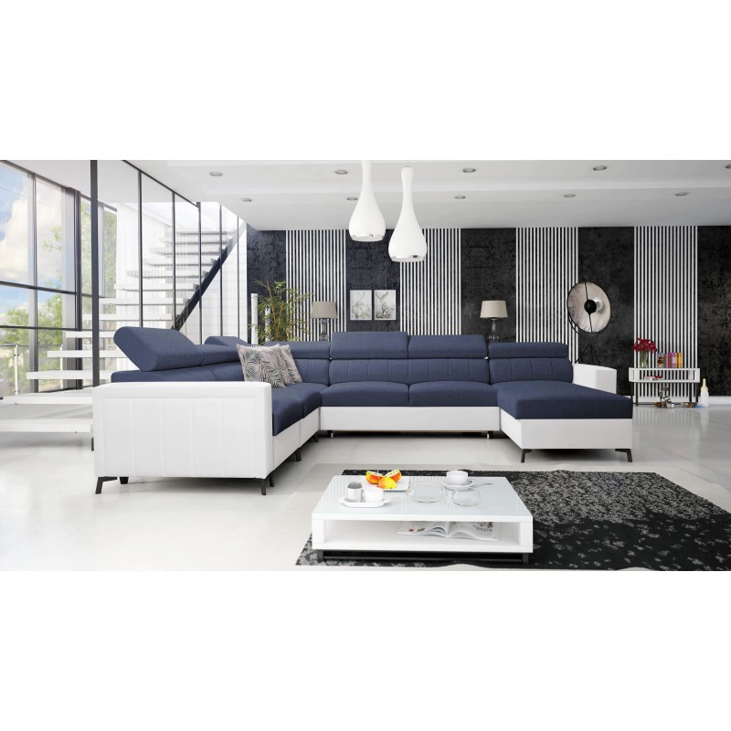 Das Ecksofa Arco VII verbindet modernes Design mit höchstem Nutzungskomfort. Dank der verstellbaren Kopfstützen und der gepolsterten Rückseite bietet es volle Entspannung und Bequemlichkeit bei jeder Ruhepause. Zusätzlich lässt es sich leicht in ein richtiges, bequemes Bett mit einer Liegefläche von 288x127 cm umwandeln - ideal für Gäste oder den täglichen Gebrauch.