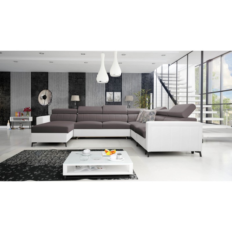 Ecksofa in U-Form Arco VII mit Schlaffunktion, verstellbare Kopfstützen, Stoff Mono 234 + Kunstleder
