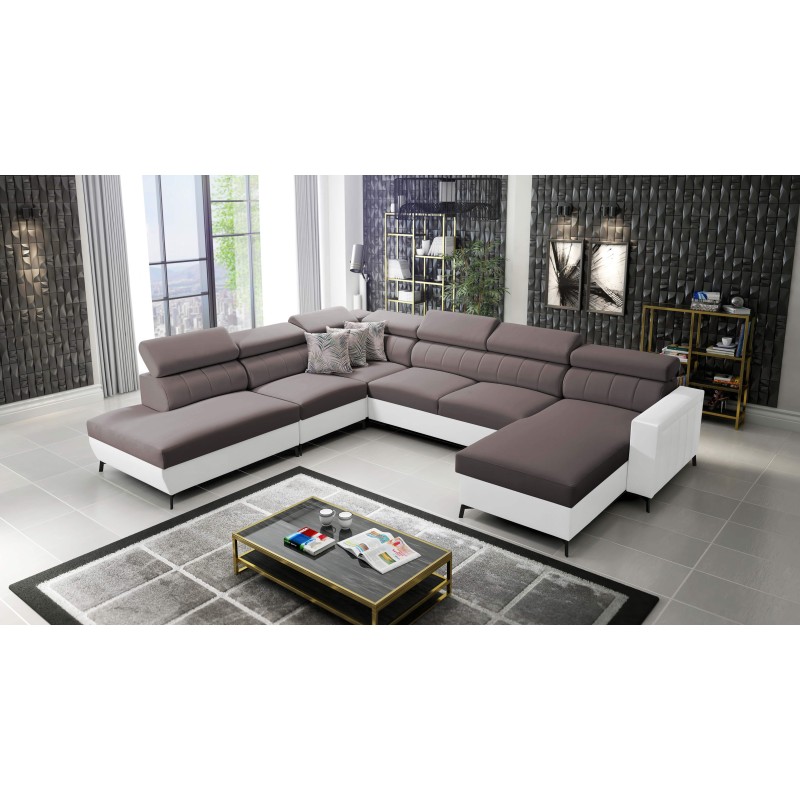 Ecksofa in U-Form Arco IX mit Schlaffunktion, verstellbare Kopfstützen Stoff Mono 234 + Kunstleder