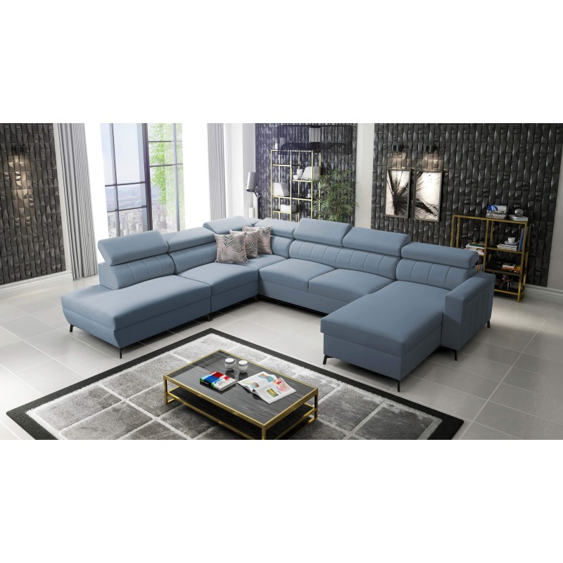 U-förmiges Ecksofa Arco IX mit Schlaffunktion, verstellbare Kopfstützen Stoff Mono 239