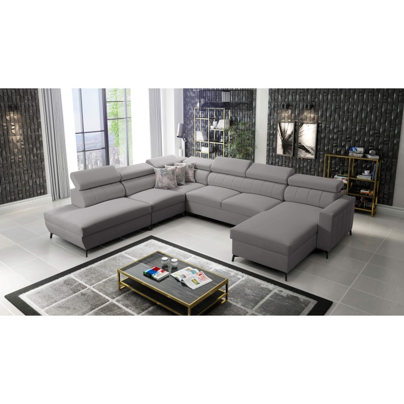 Ecksofa in U-Form Arco IX mit Schlaffunktion, verstellbare Kopfstützen, Stoff Mono 246