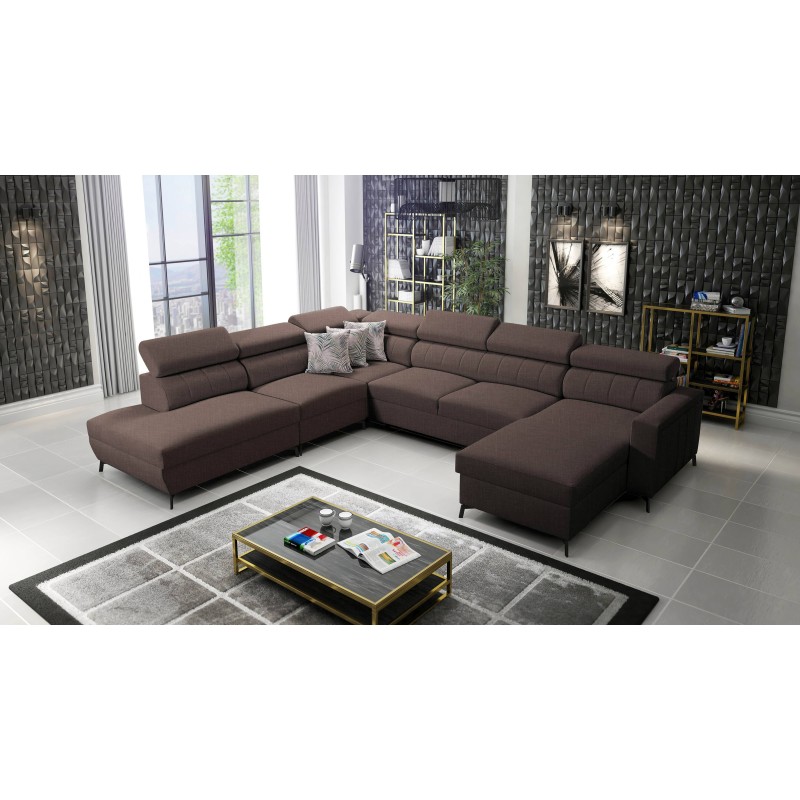 Ecksofa in U-Form Arco IX mit Schlaffunktion, verstellbare Kopfstützen Stoff Sawana 26