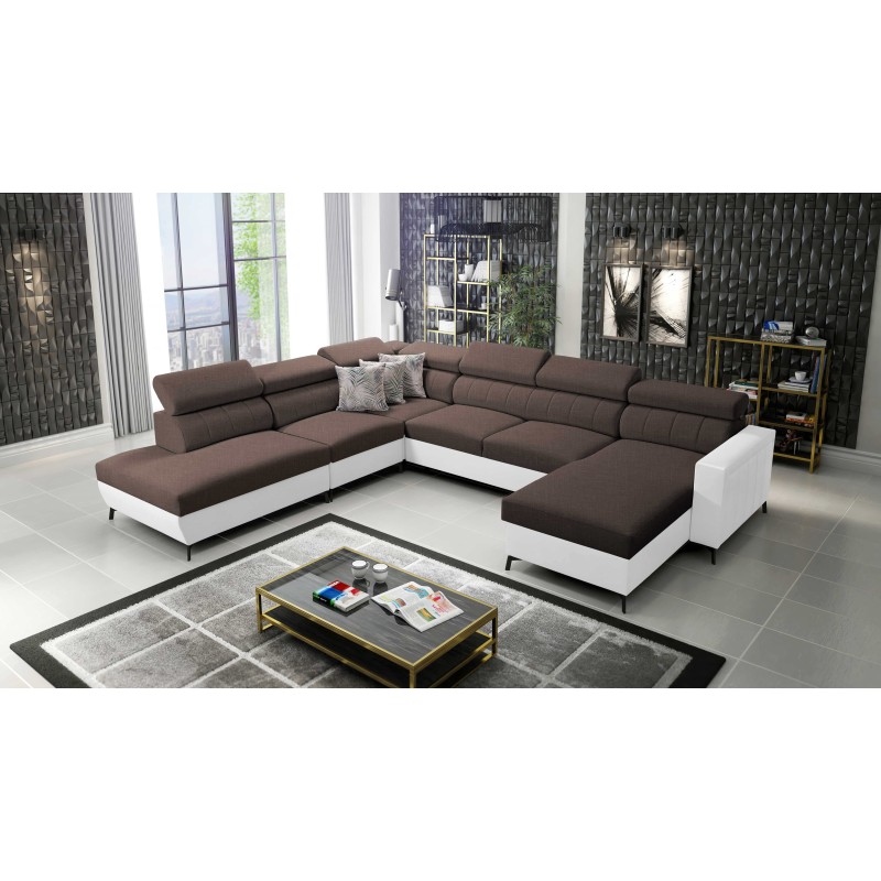 Das U-förmige Sofa Arco IX mit Schlaffunktion, verstellbaren Kopfstützen, Stoff Sawana 26 + Kunstleder
