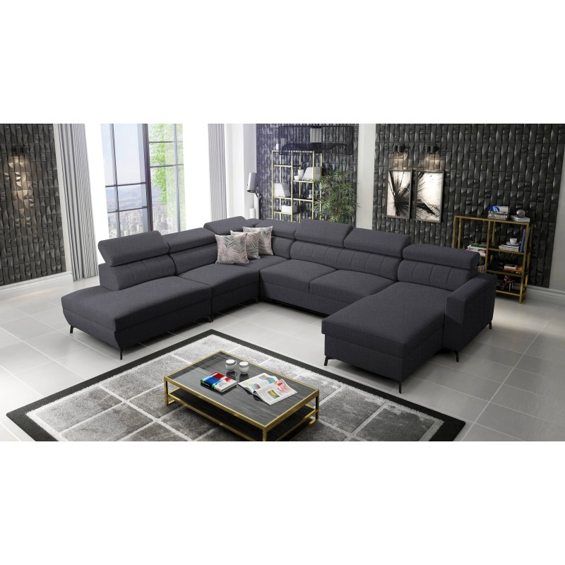 Ecksofa in U-Form Arco IX mit Schlaffunktion, verstellbare Kopfstützen, Stoff Sawana 96