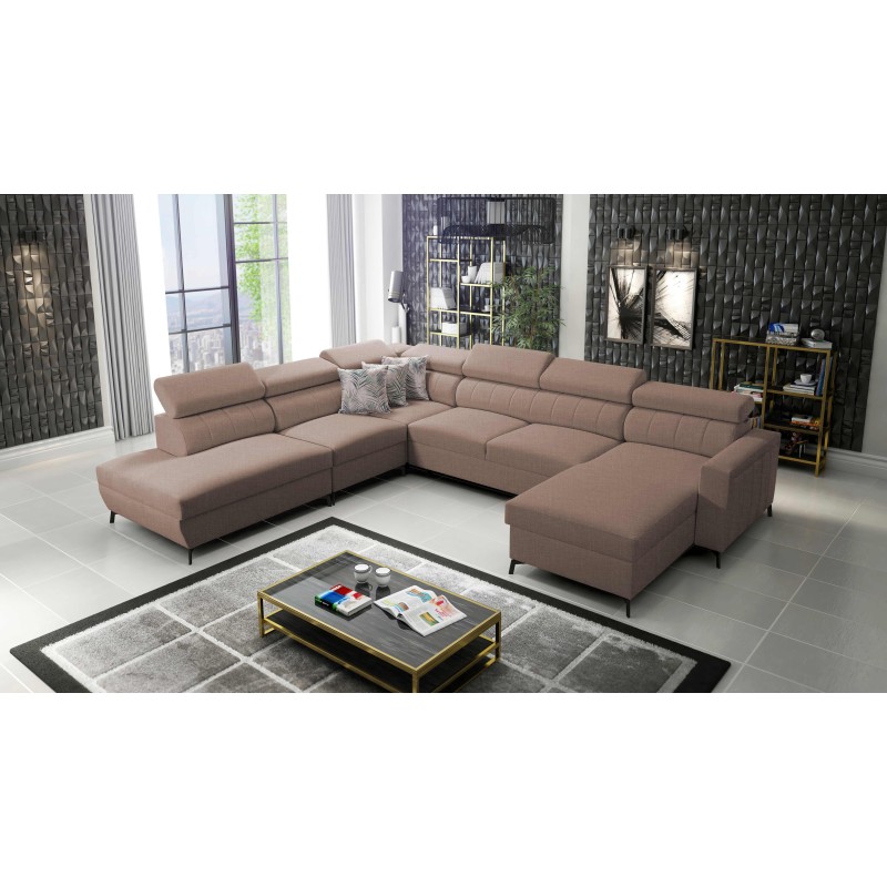 Ecksofa in U-Form Arco IX mit Schlaffunktion, verstellbaren Kopfstützen, Stoff Sawana 25