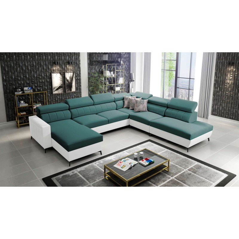 U-förmiges Ecksofa Arco IX mit Schlaffunktion, verstellbare Kopfstützen, Stoff Mono 238 + Ecoskóra