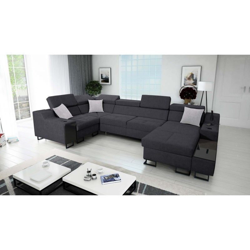 U-förmiges Sofa Avanti IV Maxi mit Schlaffunktion und Lampe mit USB-Anschluss Stoff Sawana 96