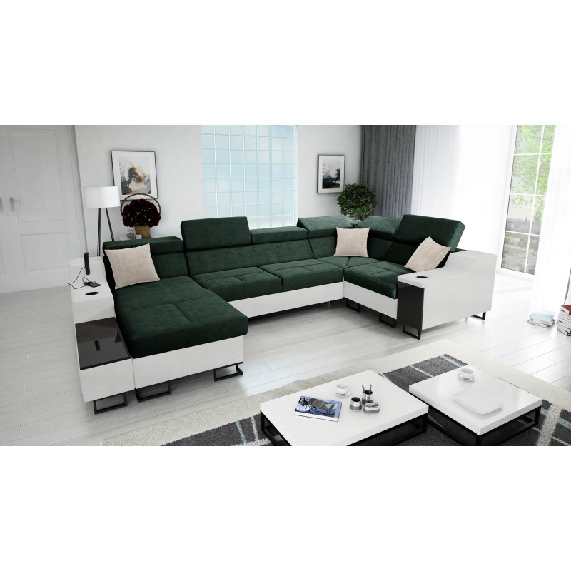 U-förmiges Sofa Avanti IV Maxi mit Schlaffunktion und Lampe mit USB-Anschluss Stoff Whisper 11 + Kunstleder