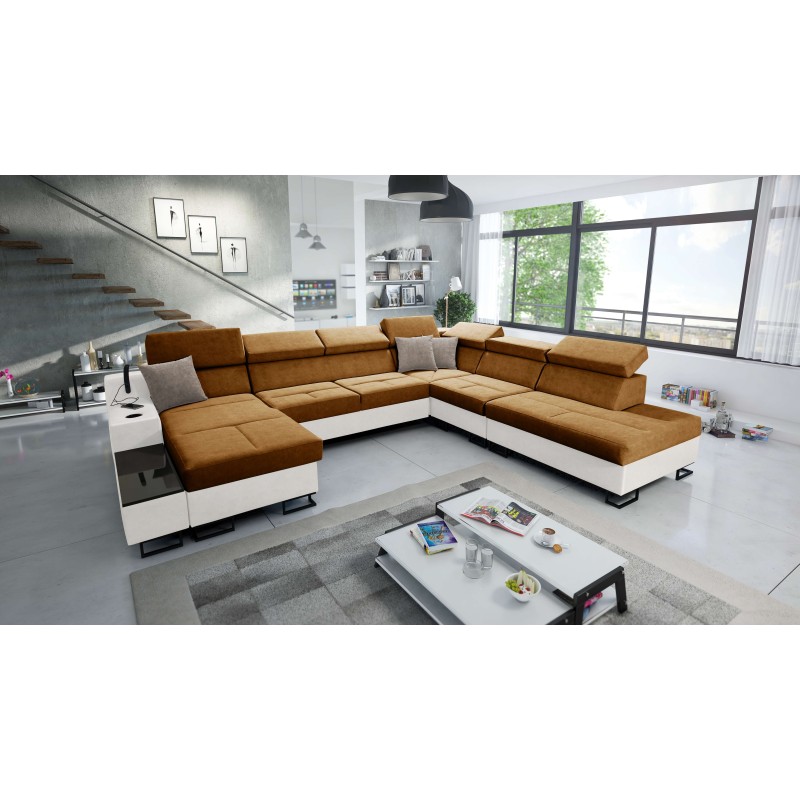 Ecksofa in U-Form Avanti X mit Schlaffunktion und Lampe mit USB-Anschluss, Stoff Whisper 9 + Kunstleder