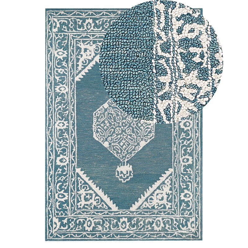 Alfombra de lana 140 x 200 cm blanco-azul GEVAS