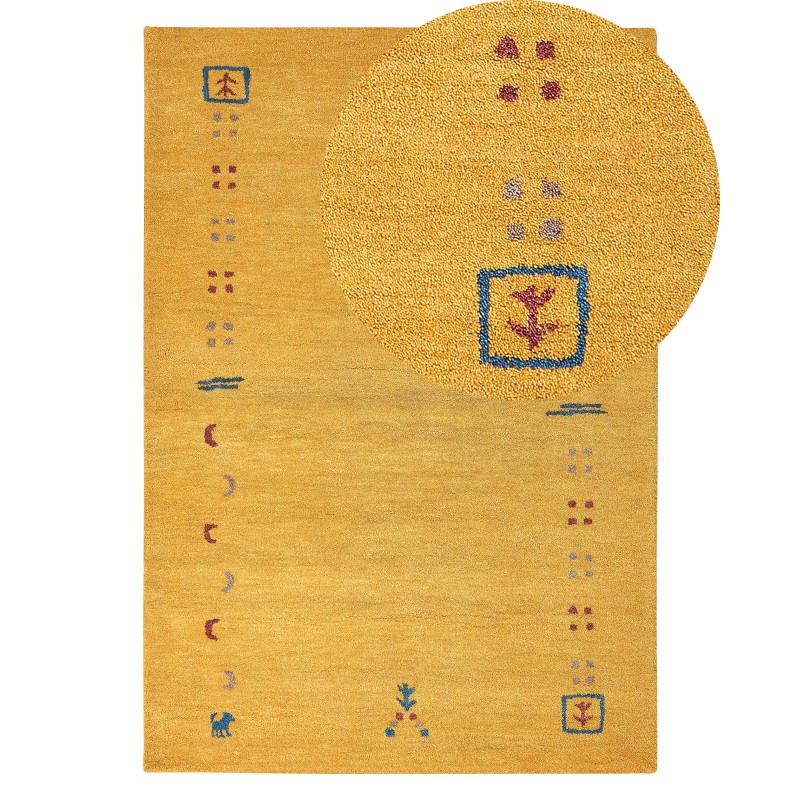 Alfombra de lana gabbeh 140 x 200 cm amarilla AKALAN