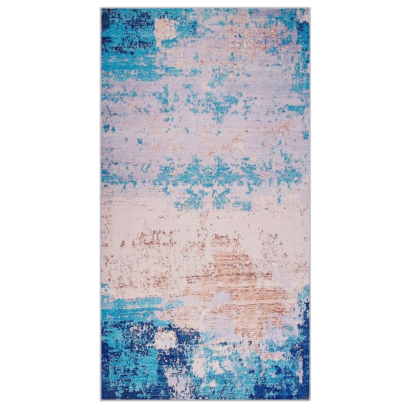Gracias a los diferentes tonos de azul, el modelo de alfombra presentado crea un ambiente agradable en cualquier habitación, y su diseño recuerda a las olas que golpean la costa arenosa de una isla. La combinación de fieltro de alta calidad, fácil de cuidar, lo hace excepcionalmente duradero. Su base antideslizante ofrece una excelente protección al suelo contra los arañazos.