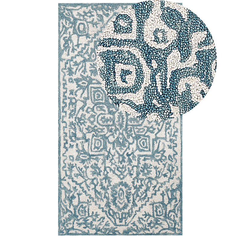 Alfombra de lana 80 x 150 cm blanco-azul AHMETLI